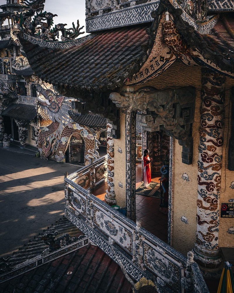 Linh Phuoc Pagoda is a beautiful Buddhist shrine in Da Lat City, every surface of which is covered in stunning mosaics. Completed in 1952, it is often referred to as the pagoda of broken glass due to the 49-meter-long dragon’s head at the entrance gate, which was meticulously pieced together from 12,000 glass bottles. The main hall consists of two rows of cobblestone mosaics, with many intricate mosaic bas-reliefs featuring the histories of the Lotus Sutras and of Shakyamuni.