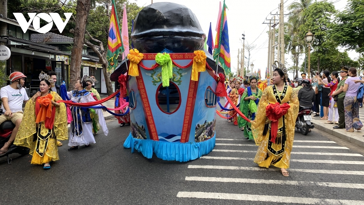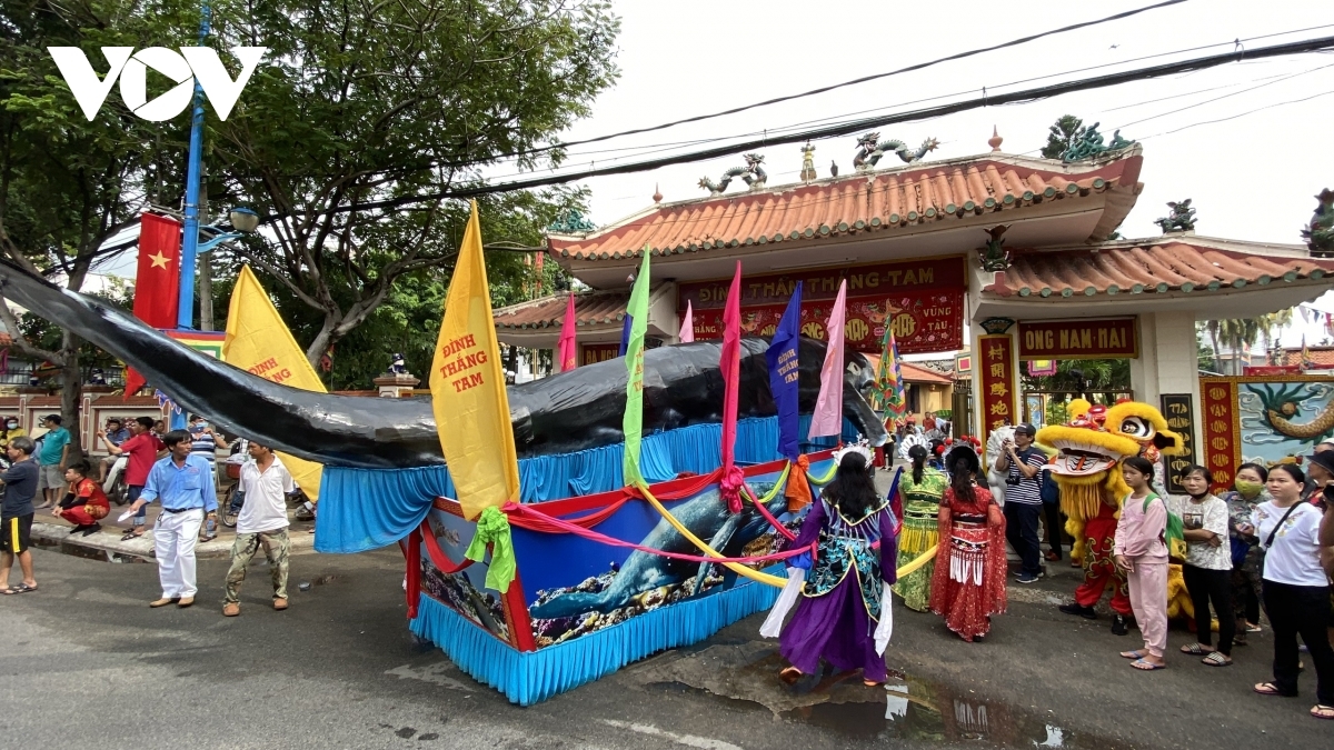 Following the conclusion of the ritual, a procession is held for the whale god, with the procession going from the sea to the Thang Tam Temple. |