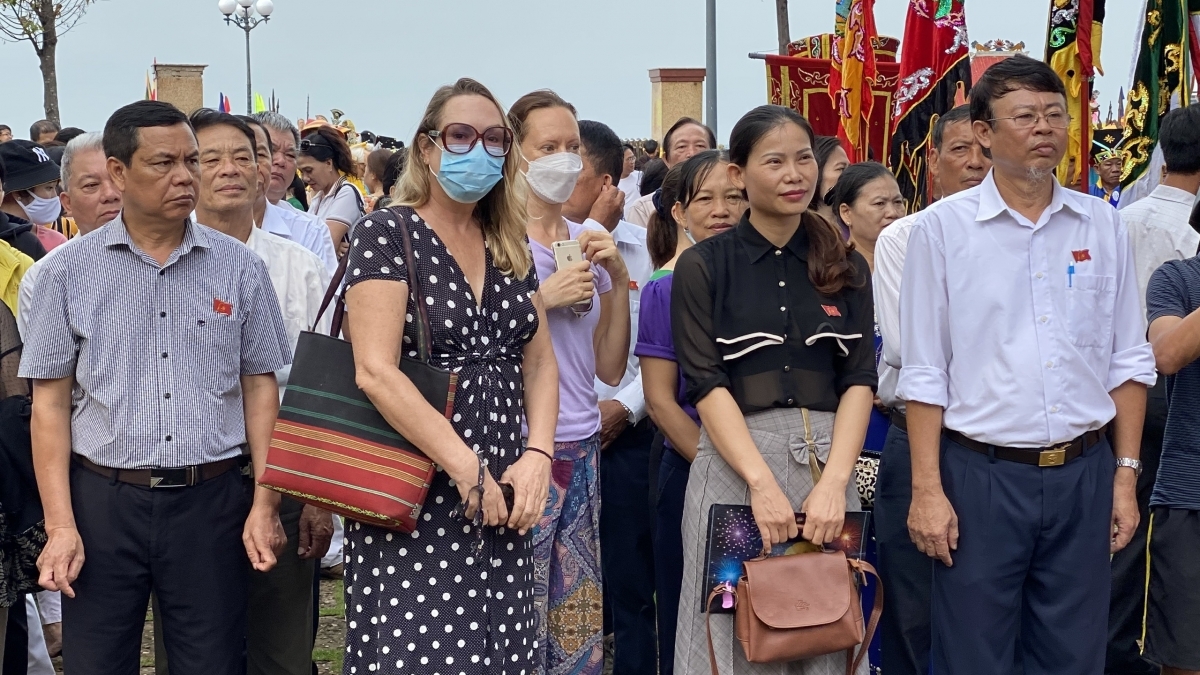Along with local people, foreigners are also interested in watching the festival. |
