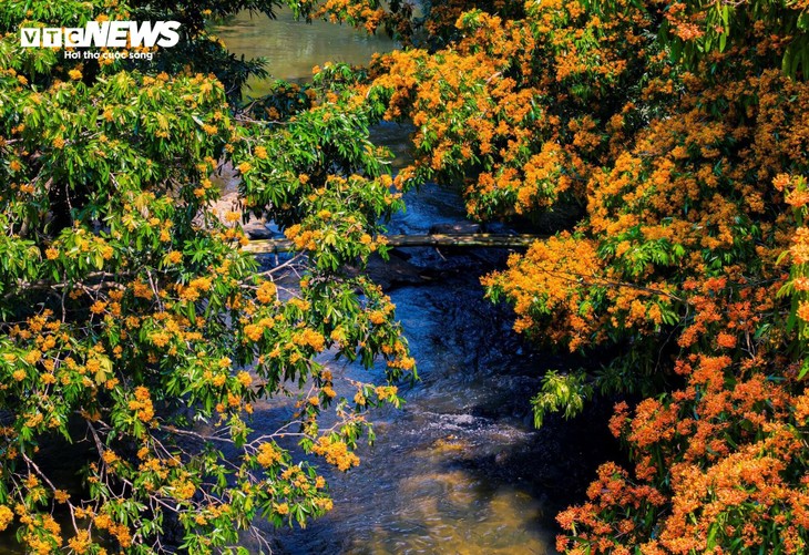 “We were amazed by the wild beauty of the site. The air is pure, the stream water is fresh, and seeing the flowers reflected on the surface makes all fatigue disappear,” said Tran My Linh, a tourist from Khanh Hoa. |