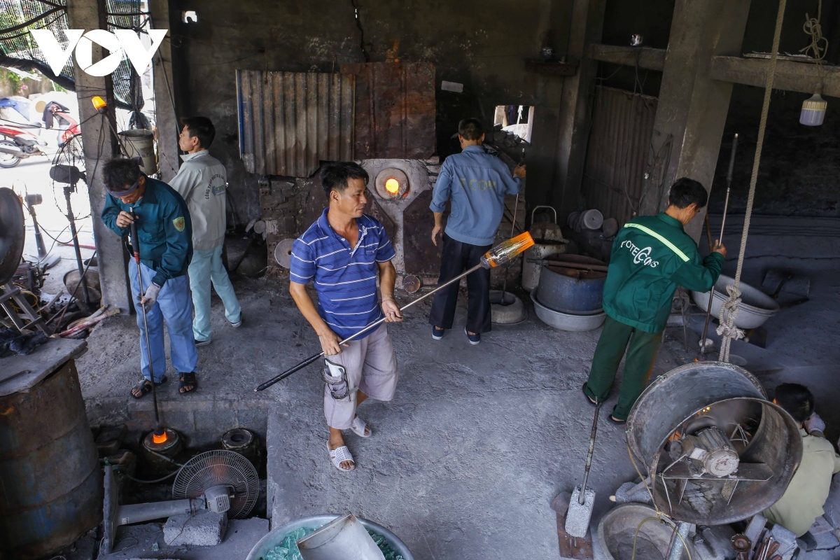 | Xoi Tri village is located in Nam Dinh province and is a famous place for traditional glass blowing work techniques as locals constantly make fire, thereby creating glass products. |