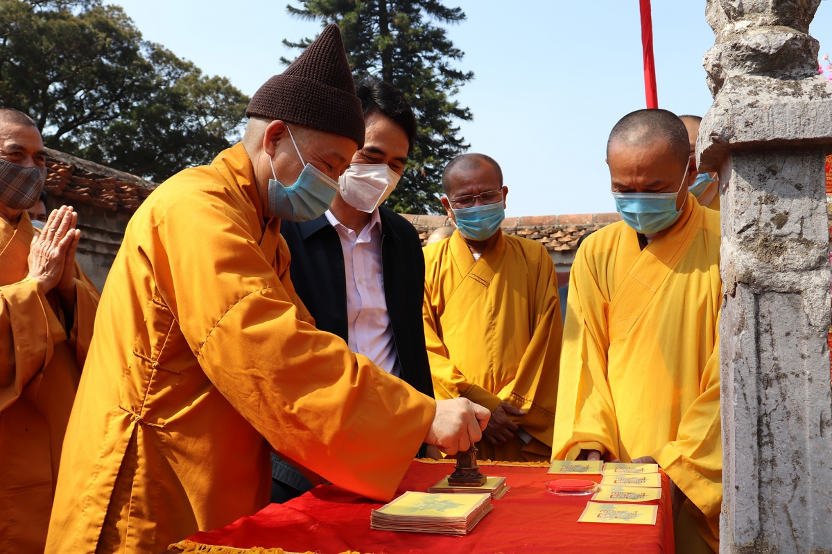 Most Venerable Thich Thanh Quyet, head of the Quang Ninh provincial Buddhist Sangha Executive Council, conducts traditional rituals as part of the occasion. |