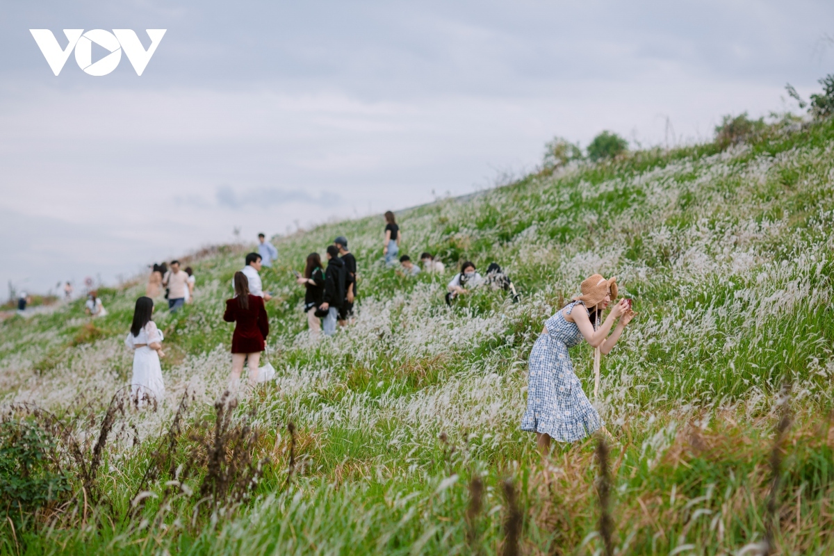 The white reed field located on Long Bien-Xuan Quan road has become a hugely popular destination among the people of Hanoi over the past week. |
