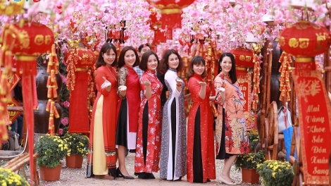(VOVWORLD) - Ao Dai, the traditional Vietnamese long dress, is very popular during Tet. These gowns, in the graceful traditional style or more colorful and innovative styles, enhance the charm of Vietnamese women.