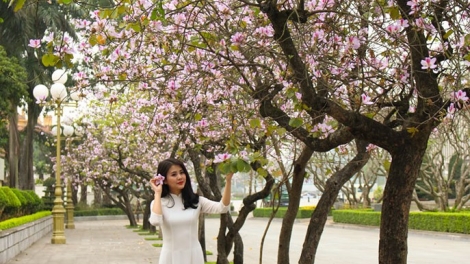 (VOVWORLD) - As the weather has warmed, Ban flowers have blossomed along Hanoi streets. Their beauty inspires many visitors to take photos.