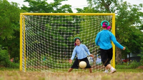 (VOVWORLD) - Football playing by women is commonly seen in Vietnam or elsewhere in the world, but it’s quite amazing to see ethnic girls wearing traditional skirts and headscarves play the sport in Vietnam.