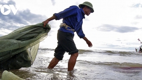 (VOVWORLD) -When visiting Hai Hoa beach in Tinh Gia commune of the north-central coastal province of Thanh Hoa early in the morning these days, people have the chance to glimpse local fishermen throwing nets to catch fish swimming near the shore.