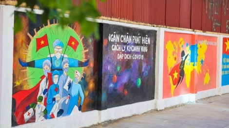 (VOVWORLD) - A 100-metre-long wall on Vu Trong Khanh street in Hanoi's Ha Dong district, is now painted with colorful images that spread a message of fighting COVID-19. It is a work by the Hanoi Youth Union.