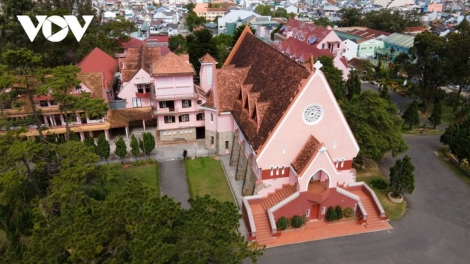 (VOVWORLD) - The Domaine de Marie Church in Da Lat city, Lam Dong province, is hard to miss. It’s made of bright pink limestone.