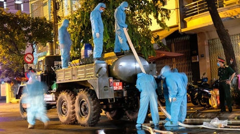 (VOVWORLD) - The Military Zone 5 High Command sprayed disinfectant throughout three hospitals and some residential areas in Da Nang on the evening of July 29 following a lockdown being enforced due to the detection of novel coronavirus (COVID-19) cases.