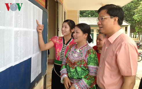 Despite the scattered rainfall in North-western region, local ethnic people in their colourful costumes were present at the polling stations early morning. In Lai Chau province, nearly 250,000 voters cast their ballots. Ma Cang Dinh, Chairman of Nung Nang commune, Tam Duong district, told VOV: “Polling stations are open from 6.30am as required by the people because it’s now harvest time. Until midday, the voting has been complete with voter turnout reaching more than 97%. Polling stations are still open”.