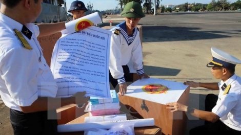 (VOVworld) – Two naval ships of Brigade 146, Navy zone 4, left Cam Ranh military port in Khanh Hoa province on Thursday headed for Truong Sa archipelago to help military forces and fishermen working there vote for on the 14th NA and People’s Councils at all levels for the 2016-2021 tenure.
