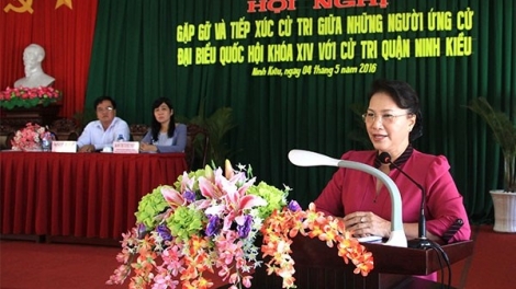 (VOVworld) - National Assembly (NA) Chairwoman Nguyen Thi Kim Ngan met voters in Nhon Ai commune, Can Tho City on Friday.