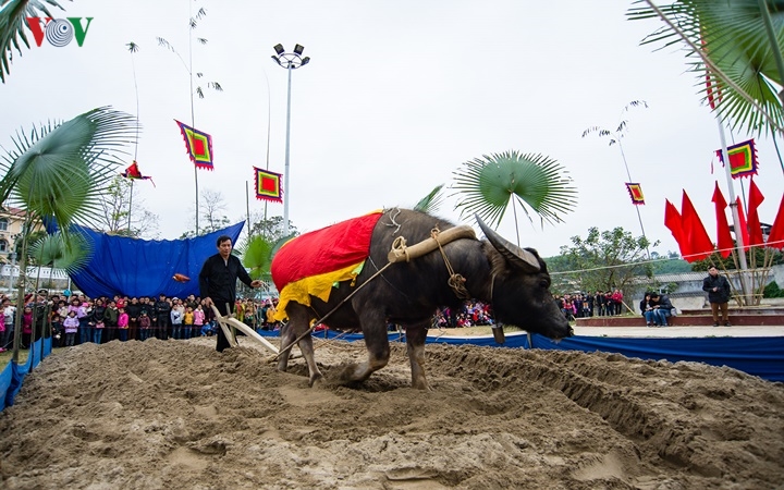 Leaving Huong pagoda, visitors head to Tuyen Quang province’s Dinh Hoa district to join the “Long Tong Festival”, a unique festival of the local Tay and Nung ethnic groups. This year the festival will take place on the 9th and 10th of the first lunar month. On the main festival day, visitors can take part in a ceremony called “going to the field” at the De Pass rice field. After a ritual conducted by a sorcerer, the villagers select a healthy man said to be good at farming to invoke a bumper crop by doing the first ploughing of the year . Ma Thi Cham of the Tay ethnic group in Dinh Hoa district told VOV: "The person selected should be a village elder or a very healthy man who will start the first crop of the new year. The man will guide the buffalo and plough the first furrow to the cheers of other villagers who have come to support him."