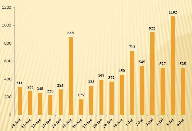Vietnam's daily count of COVID-19 infections from June 20 to 12:00 a.m on July 6. |
