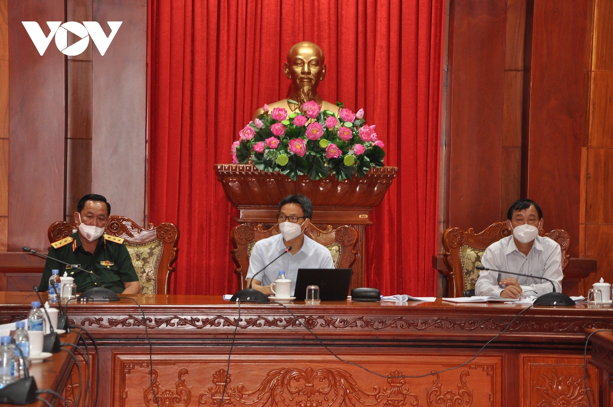 Deputy Prime Minister Vu Duc Dam works with the Command for COVID-19 Prevention and Control in Tien Giang province. (Photo: VOV) |