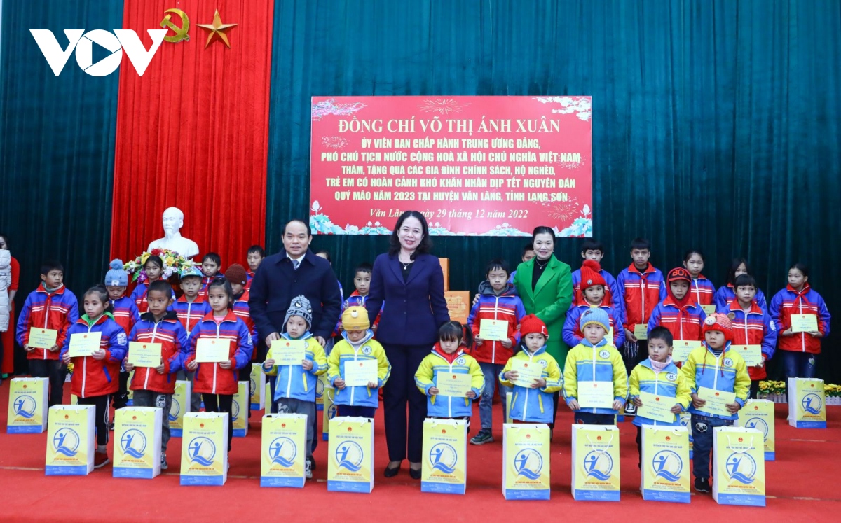 Vice President Vo Thi Anh Xuan presents gifts for disadvantaged children in Van Lang district (Photo: VOV) |