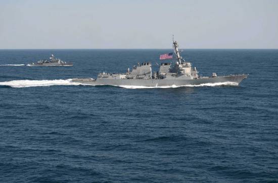 | An archive photo of destroyer USS Lassen, which sailed within 12 nautical miles of Subi Reef in the Spratly archipelago in the East Sea, on Oct. 27, 2015. |