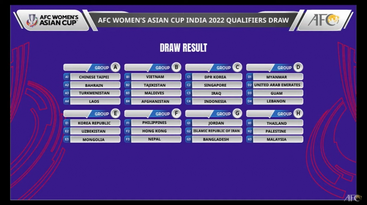 The AFC have drawn 28 teams into four groups of four, in addition to four groups of three. Defending champion Japan, runner-up Australia and third-place China and hosts India entered the final round have already qualified for the Finals, which will see an additional 12 teams competing for the continent's leading women's national team title.