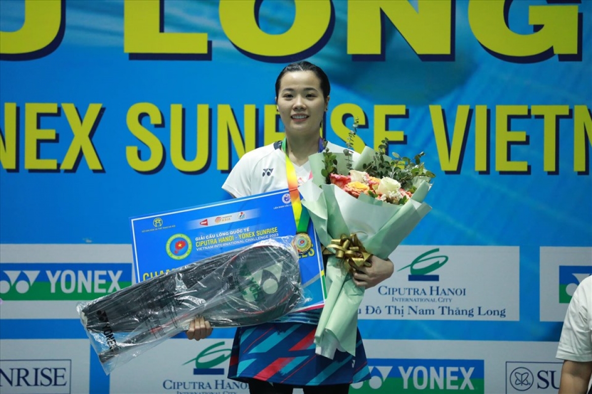 Vietnamese badminton player Nguyen Thuy Linh is crowned champion at the Vietnam International Challenge 2023. (Photo: Minh Phong) |