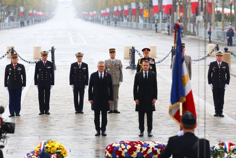 Ahead of Monday’s commemoration, Starmer met French President Emmanuel Macron for a bilateral meeting to discuss the conflict in Ukraine, European security, and the humanitarian situation in Gaza.