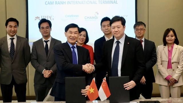 Representatives from Cam Ranh International Terminal Joint Stock Company and Singapore-based Changi Airport International sign a cooperation agreement on February 20, 2024. (Photo: nld.com.vn) |