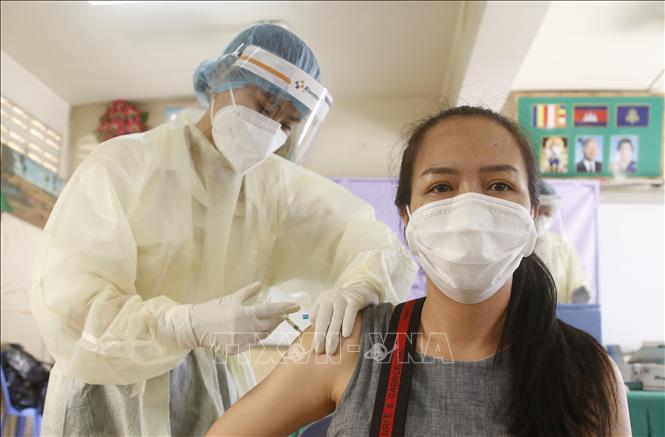 A woman gets vaccinated in Phnom Penh. (Photo: Xinhua/VNA) |