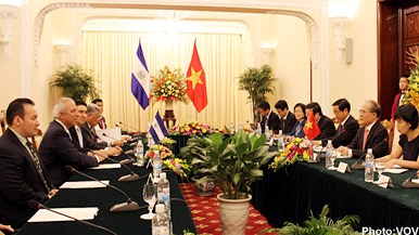 Sigfrido Reyes said the purpose of his visit to Vietnam is to examine the possibility of strengthening cooperation between the two legislative bodies and peoples. The visit aims to share experience with Vietnam in implementing poverty reduction and social welfare policies, so as to boost friendly cooperation in the interest of each country and for peace and development. He said he hopes that Vietnam will help El Salvador develop cooperative relations with other countries in Southeast Asia and Asia-Pacific regions. He said his country’s foreign policy has oriented towards Asia Pacific, including Vietnam and supported Vietnam’s cooperation with central America as a place of large oil reserves. The same day, Chairman of the El Salvador Legislative Assembly Sigfrido Reyes met Party leader Nguyen Phu Trong and President Truong Tan Sang. The leaders wished for further cooperation with Latin America and El Salvador and expected early signing of bilateral agreements in double tax avoidance and education cooperation.