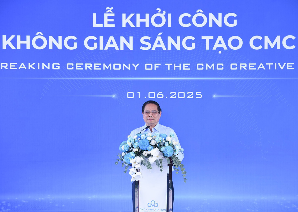 PM Pham Minh Chinh (C) attends the groundbreaking ceremony for the Hanoi CMC Creative Space (CCS Hanoi), June 1, 2025. |
