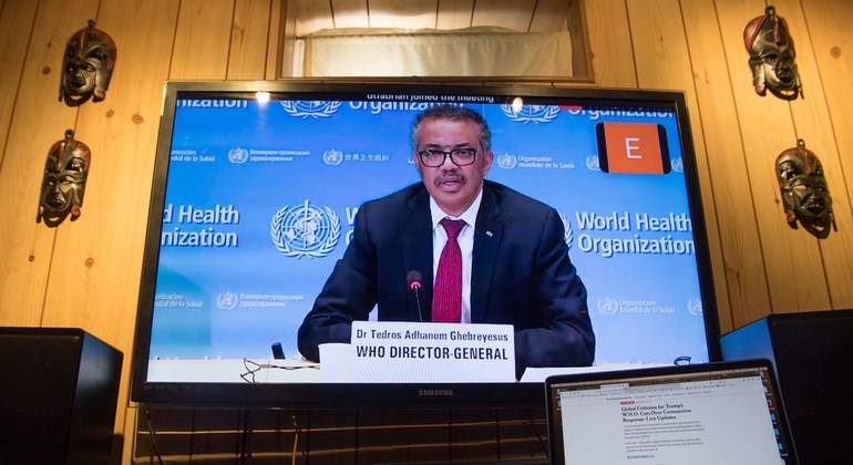 The head of the World Health Organization (WHO) speaks at a virtual meeting of the G20 leading global economies on April 19, 2020. (Photo: globalimpactnews.com) |