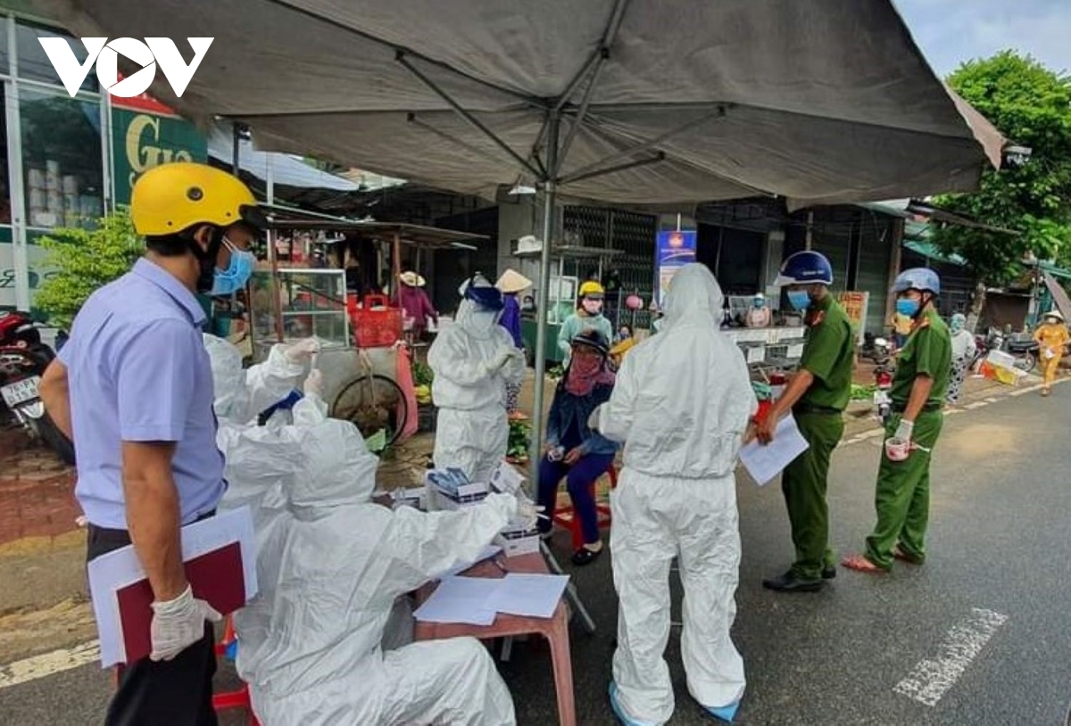 Healthcare workers take samples for COVID-19 testing in Quang Ngai. |