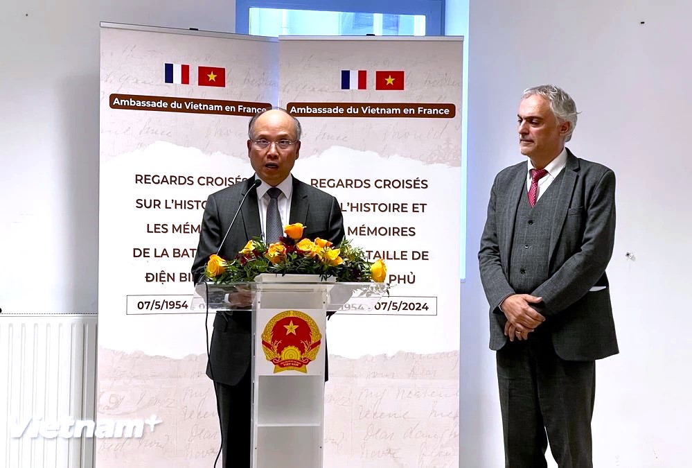 Ambassador Dinh Toan Thang speaks at a ceremony to mark the 70th anniversary of the Dien Bien Phu victory in France (Photo: Thu Ha/ VNA) |