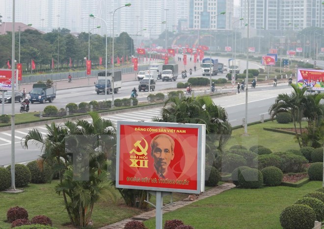 | Hanoi's streets decorated with flags and banners to welcome the 12th National Party Congress (Photo: VNA) |