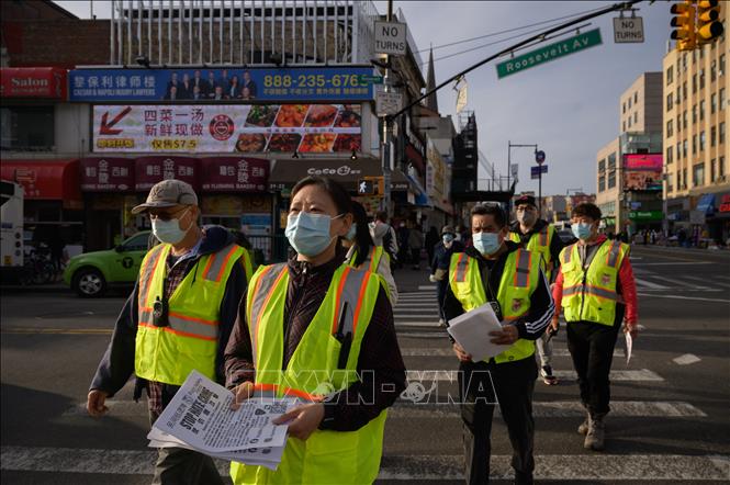 Wearing bright safety vests and carrying walkie-talkies, volunteers patrol in New York to protect Asian Americans against a spike in hate crimes (Photo: VNA) |