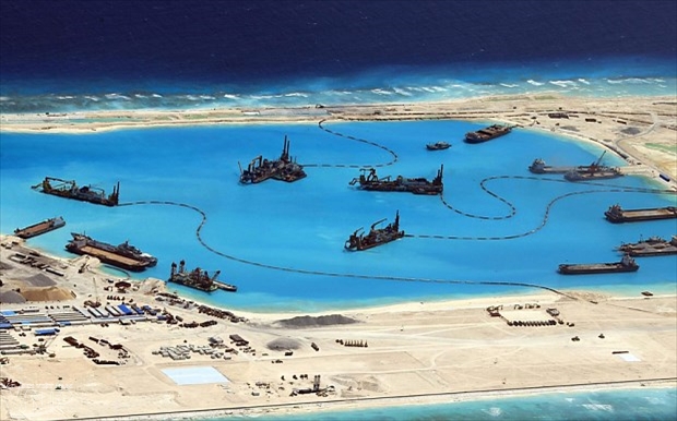 ![]() China’s ships at Chu Thap (Fiery Cross) reef in Vietnam's Truong Sa archipelago. (Photo: EPA) |