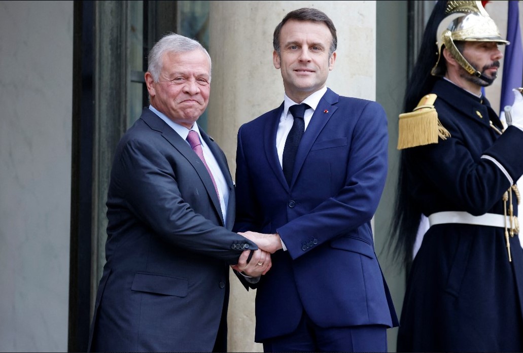 French President Emmanuel Macron (R) and Jordan King Abdullah II in Paris, France, February 16, 2024. (Photo: Ludovic MARIN/AFP) |