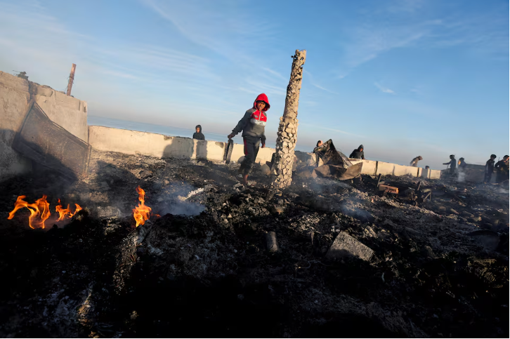 Palestinians inspect the site of an Israeli strike on beachfront cafe, amid the ongoing conflict between Israel and Hamas, in Deir Al-Balah in the central Gaza Strip, January 14, 2025. (Photo: REUTERS) |