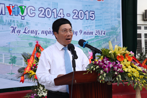 ![]() Deputy Prime Minister and Foreign Minister Pham Binh Minh speaks at the ceremony at Ha Long Gifted School in Quang Ninh province on Sept. 5, 2014