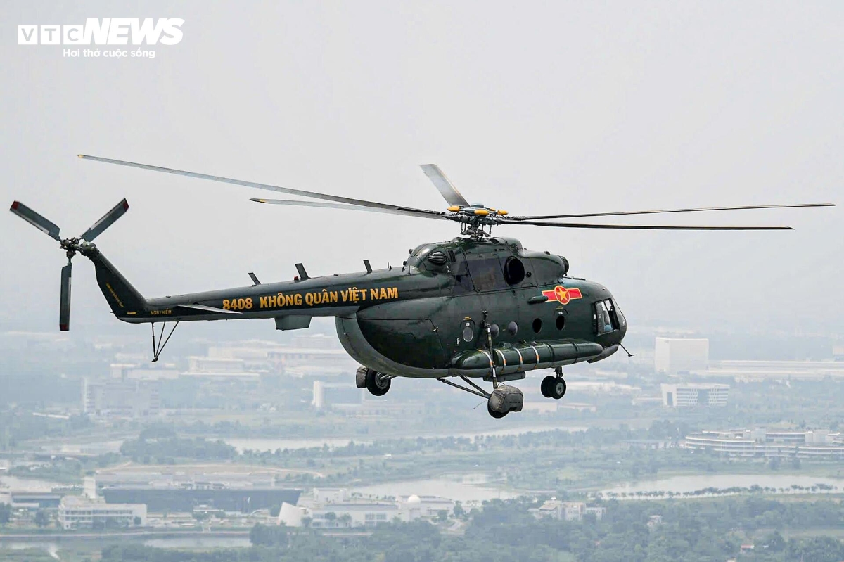 One of the helicopters scheduled to perform a special flyover above the capital's sky on National Day, September 2nd, as part of a formation of 10 Mi-8 and Mi-17 helicopters (Photo: VTC News) |