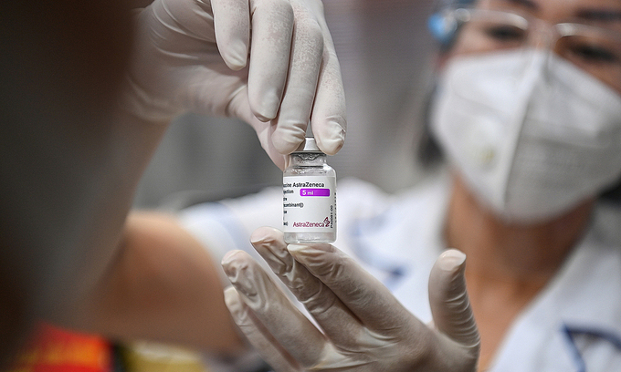 A medical worker holds a vial of the AstraZeneca Covid-19 vaccine in Hanoi. (Photo: by VnExpress/Giang Huy) |