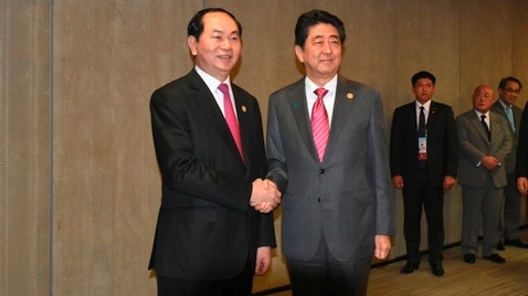 At a meeting with Japanese Prime Minister Shinzo Abe on the sidelines of the Lima summit, President Quang said Vietnam always considers Japan a leading and long-term partner, and expressed a wish to expand Vietnam's strategic partnership with Japan. The leaders agreed to boost multilateral cooperation between the two countries, as well as people exchanges. They also discussed several global and regional issues, including the East Sea.