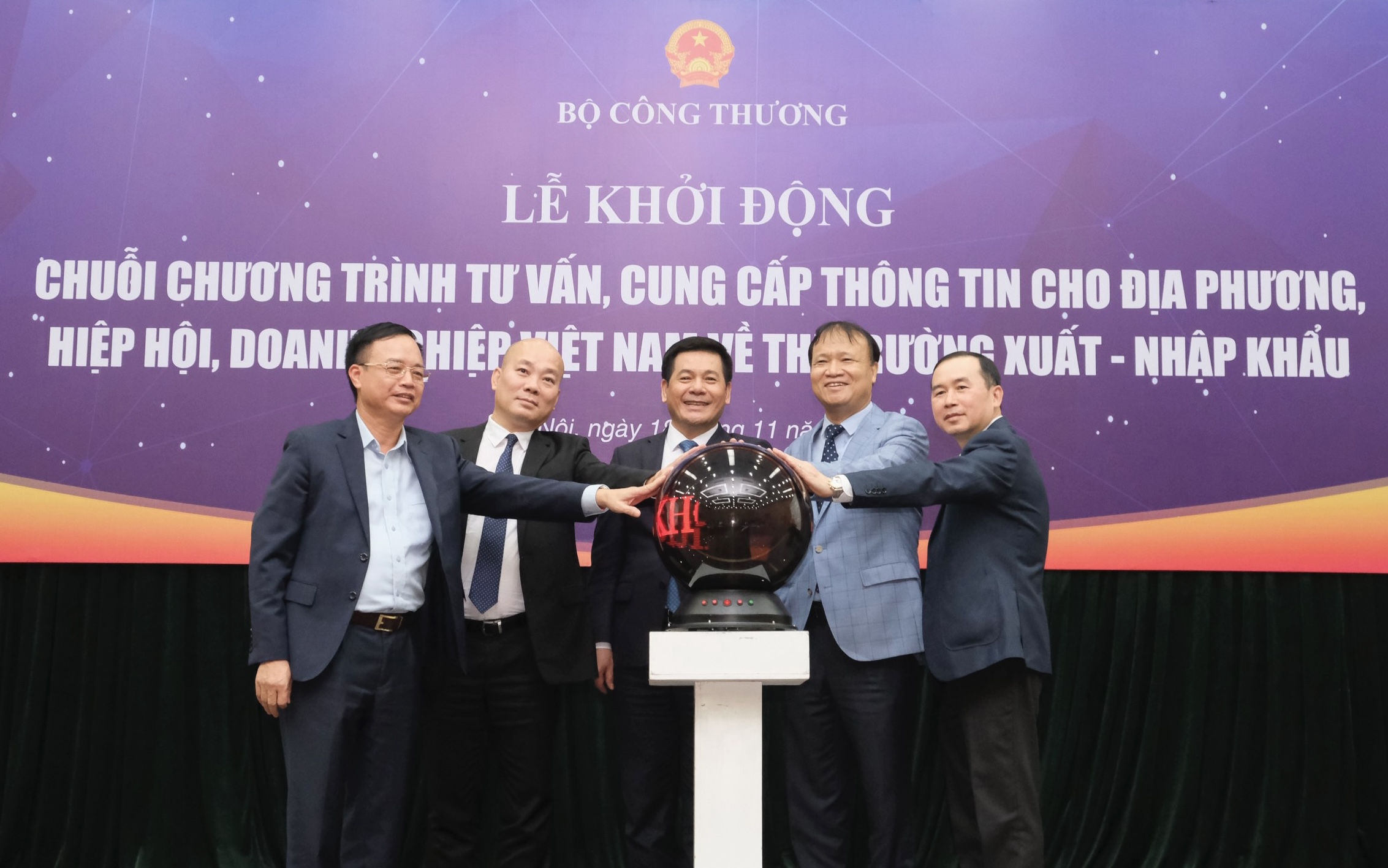 Minister of Industry and Trade Nguyen Hong Dien (C) attends a ceremony to launch a series of programs to provide Vietnamese businesses and localities with information about export and import markets (Photo: VGP) |