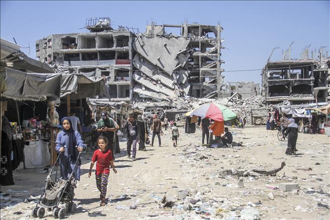 The destructive scene after Israeli airstrikes on the Gaza Strip on July 21, 2024 (Photo: XNA/ VNA) |