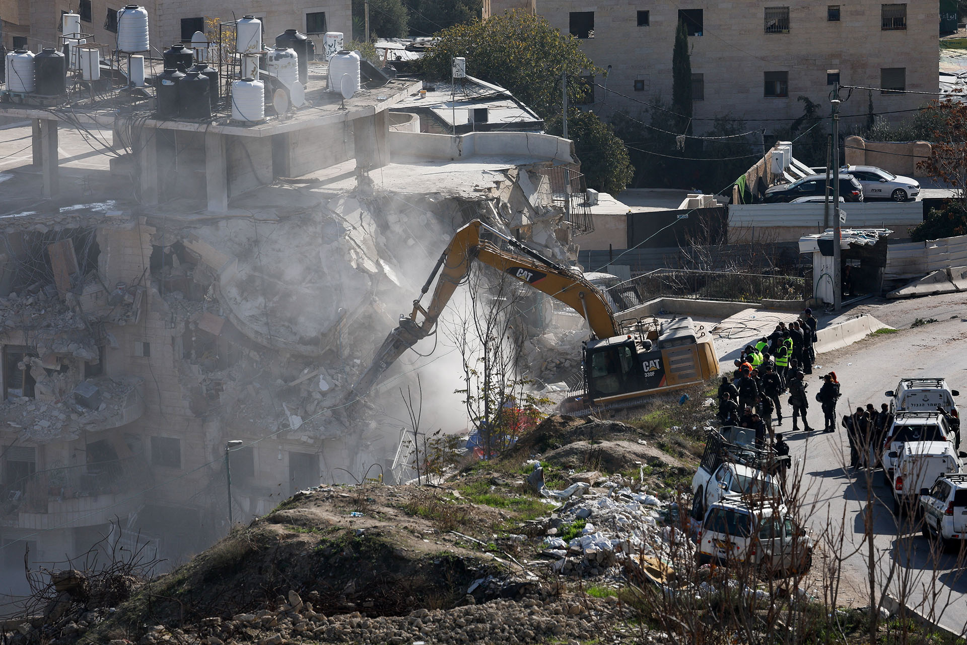 Israel authorities tear through a four-story residential building in East Jerusalem on December 22, 2025. (Photo: REUTERS/Ammar Awad) |
