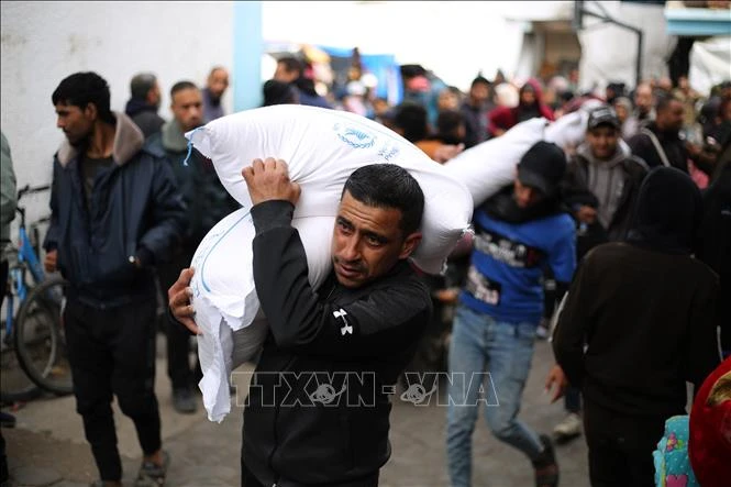 UNRWA conducts relief delivery in Rafah, Gaza Strip (Photo: Xinhua/VNA) |