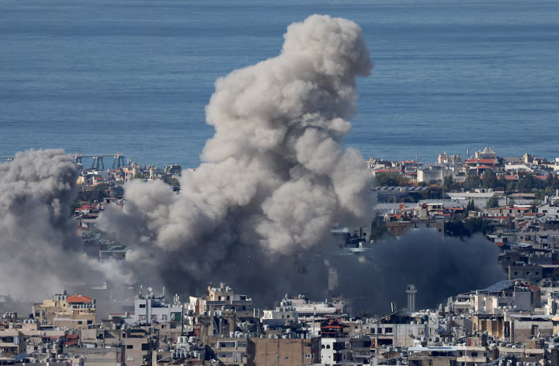 Smoke billows over Beirut's southern suburbs, after an Israeli strike, amid the ongoing hostilities between Hezbollah and Israeli forces, as seen from Baabda, Lebanon, November 26, 2024. (REUTERS) |