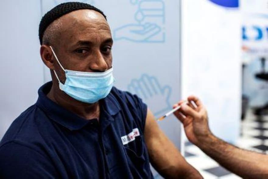 Israeli Izhak Mesfin, 44 years old, receives a third shot of coronavirus disease (COVID-19) vaccine as country launches booster shots for over 30-year-olds, in Rishon Lezion, Israel August 24, 2021. (Photo: REUTERS) |
