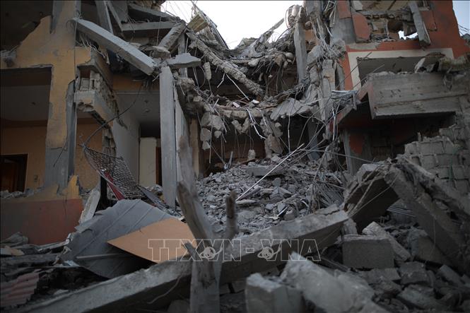 Buildings are demolished after Israel's airstrikes on the city of Deir el-Balah in the Gaza Strip on April 24, 2024. (Photo: Xinhua/VNA) |
