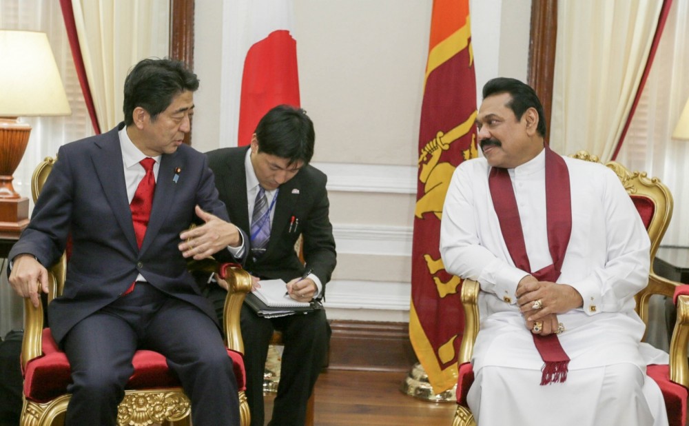 Japan's Prime Minister Shinzo Abe (L) and Sri Lankan President Mahinda Rajapaksa during their bilateral meeting in Colombo September 7, 2014.(Photo: colombogazette) |