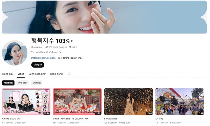 Jisoo currently has 4.99 million subscribers on her YouTube channel “Happiness Jisoo 103%.”